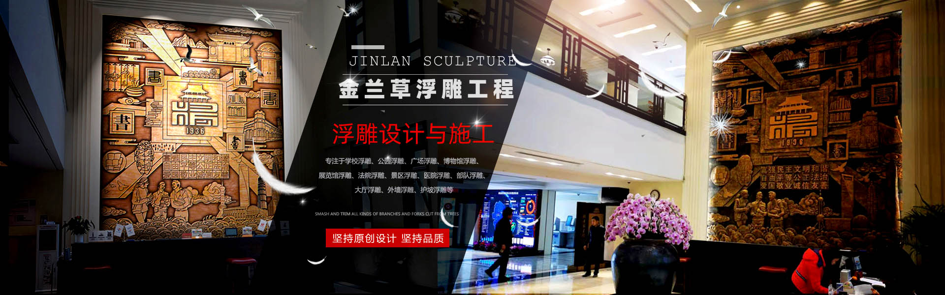 金蘭草浮雕專注于浮雕原創(chuàng)設(shè)計(jì)與定制服務(wù),精雕細(xì)琢,力求精妙絕倫,服務(wù)中高端客戶。學(xué)校浮雕、公園浮雕、廣場浮雕、法院浮雕、景區(qū)浮雕、軍事浮雕、醫(yī)院浮雕、博物館浮雕、展覽館浮雕、大廳浮雕、外墻浮雕、護(hù)坡浮雕。